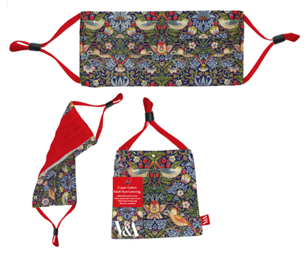 The face coverings are made out of 100% cotton, pleated and cut for a better facial fit, and digitally printed with a full-colour design on the front and contrast colour on reverse and adjustable elastic straps. Available now with a suggested retail of £9.99. The coverings have a pocket for filters and come with a matching cotton bag for hygienic storage. They are machine washable at 60 degrees.