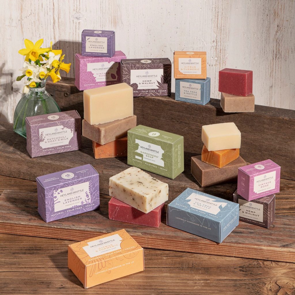 Heyland & Whittle are well practised in the artisan production of handmade, 100% natural soaps. They follow the cold processed method using only 100% natural, pure ingredients, including essential oils, herbs, spices and natural colourings such as madder root and turmeric.