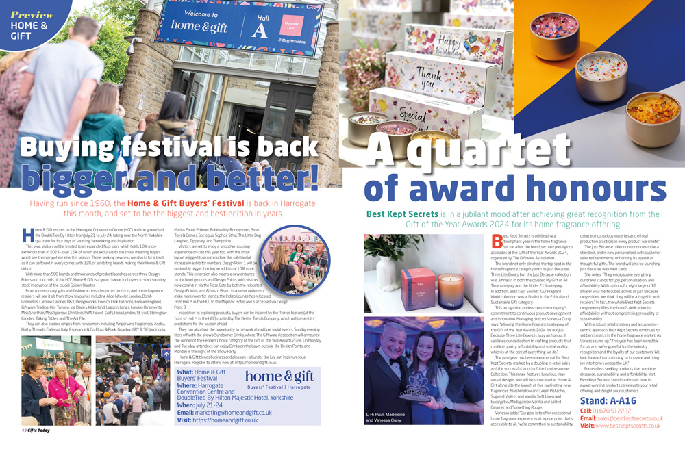 IN OUR FAIR FOCUS SECTION: We share a comprehensive advance look at what’s on offer at the upcoming Home & Gift Buyers’ Festival in Harrogate, and preview Autumn Fair, Harrogate Christmas & Gift, and HKTDC Hong Kong Gifts & Premium Fair.