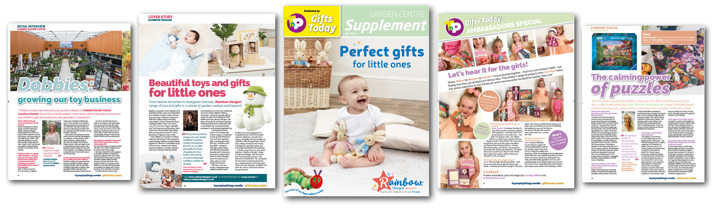 Rainbow Designs is our cover story with a good insight into the varied product range on offer which are now widely available in garden centres throughout the UK, including great gifts for new babies and infants.
