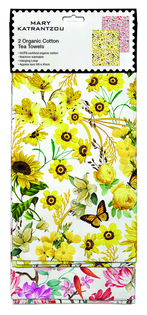 M&G’s new kitchen textiles collection (comprising oven gloves, aprons, tea towel sets and cotton napkins) is enhanced with new designs by Mary Katrantzou and Angela Harding. A bright and cheerful print ‘Yellow Butterflies’ by Mary Katrantzou co-ordinates across oven gloves, aprons, tea towels and cotton and paper napkins (and is also available as a journal). Angela Harding’s ’Swallows and Sea’ receives the same treatment.
