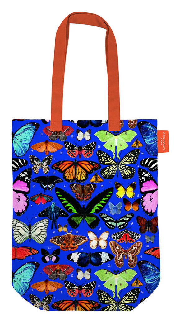 Leading the launch are three stunning new organic cotton tote bags. M&G’s consistently excellent colour printing on fabrics really makes these new bags stand out. In particular, Mary Katrantzou’s ‘Butterflies’ is exceptionally vibrant and set off to perfection with contrasting orange straps. Katrantzou’s ‘Mirror Marble’ design, another hit from her card launch in January, makes another superb tote.