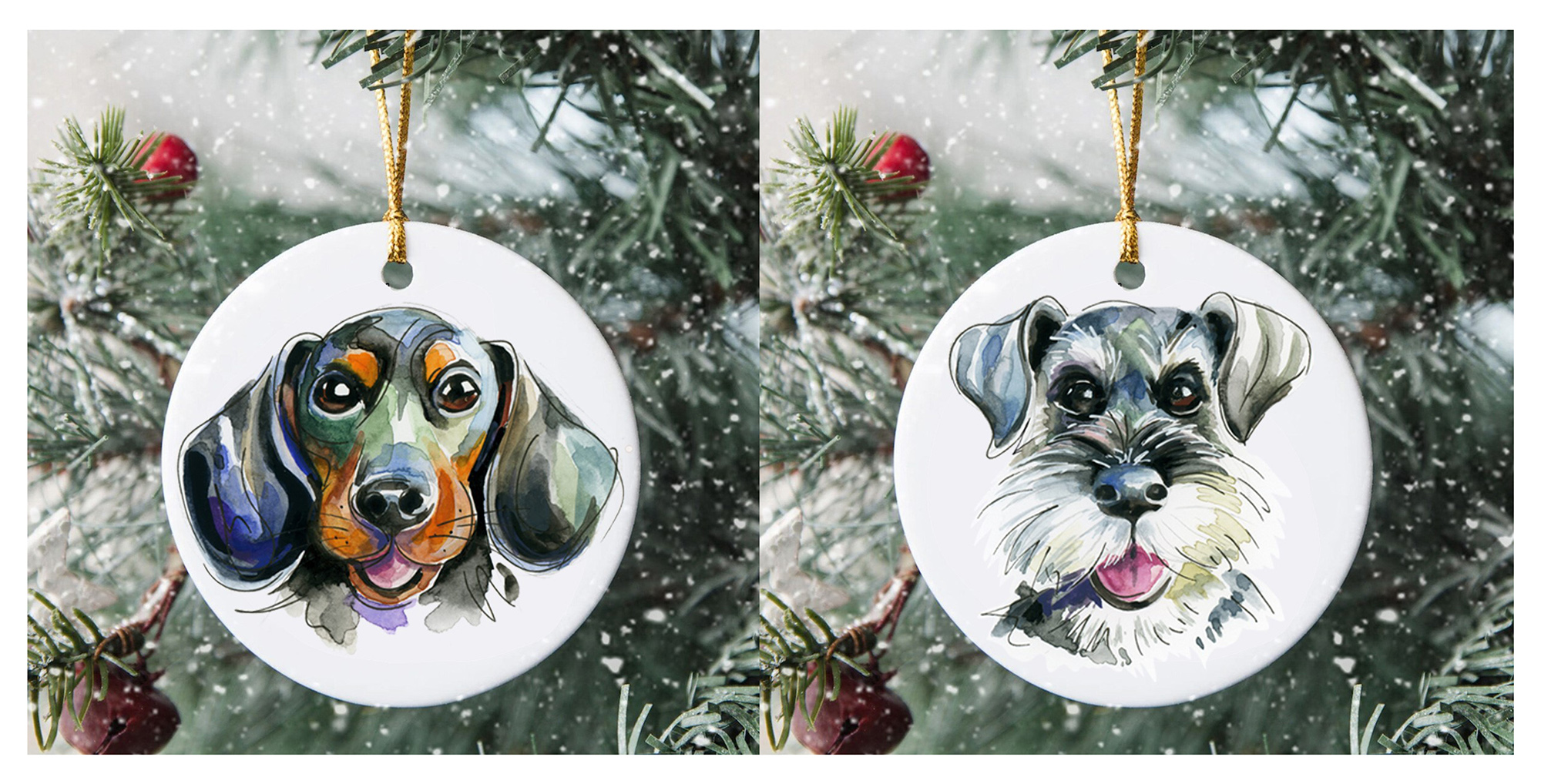 Each decoration showcases one of artist Sue Ballard’s fun and beloved dog designs. The collectable pieces combine Sue Ballard’s illustrations with contemporary design, making them a perfect choice for animal lovers.
