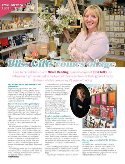 IN OUR RETAILER FOCUS SECTION: We chat to Julie Dachey, co-director of Gifts with Presence; and Nicola Reading, owner/manager of Bliss Gifts in Darlington.