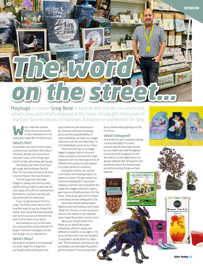 PLUS: there’s pages of must-read opinions from Sarah Ward, CEO of The Giftware Association; Greg Rose, co-owner of Maybugs gift shop chain in East Sussex; Cathy Frost, owner of Loveone gift shop in Ipswich; Neil Amer, director and co-founder of Retail100 Consulting; and Therese Oertenblad, founder of Small Business Collaborative.