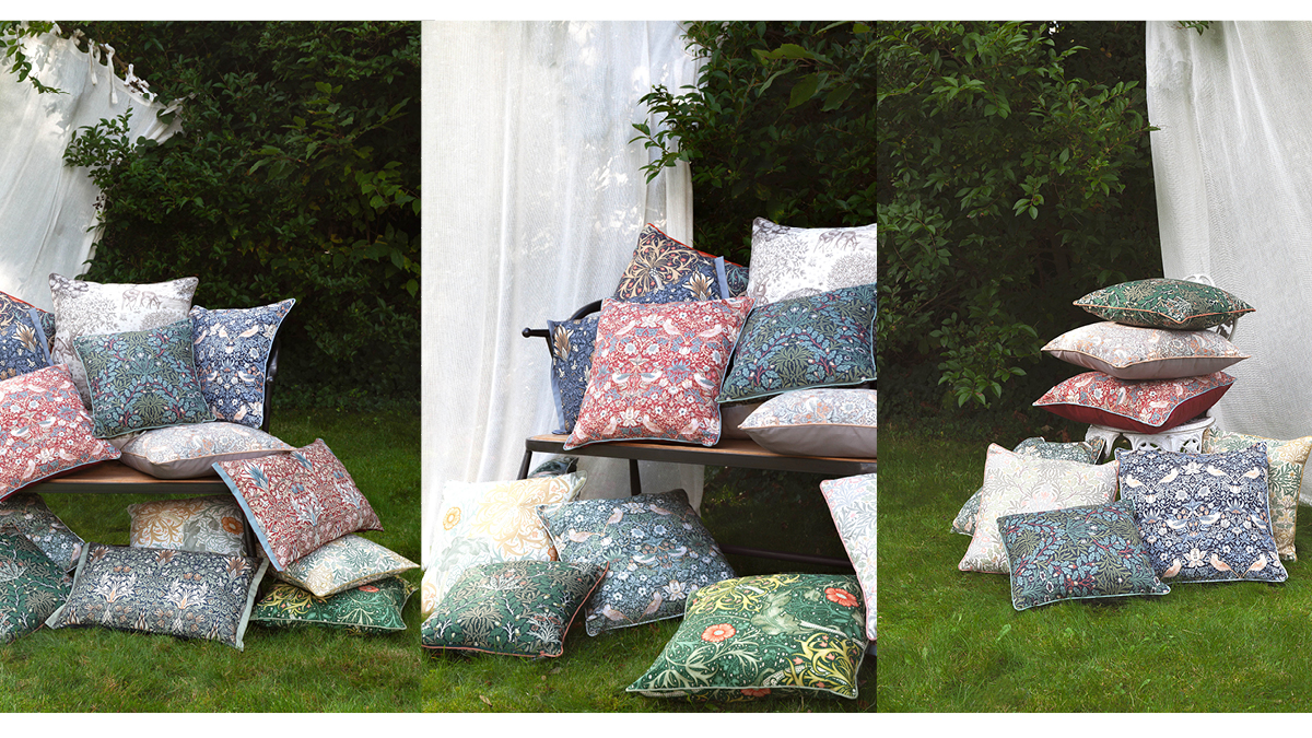 In partnership with Morris & Co, Riva Home has introduced a collection of outdoor cushions featuring heritage prints from the archive of William Morris.