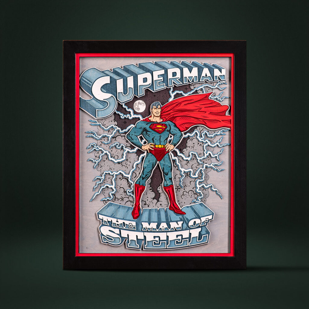 This collection includes a wooden map of Gotham, a Batman wall clock, and Superman posters