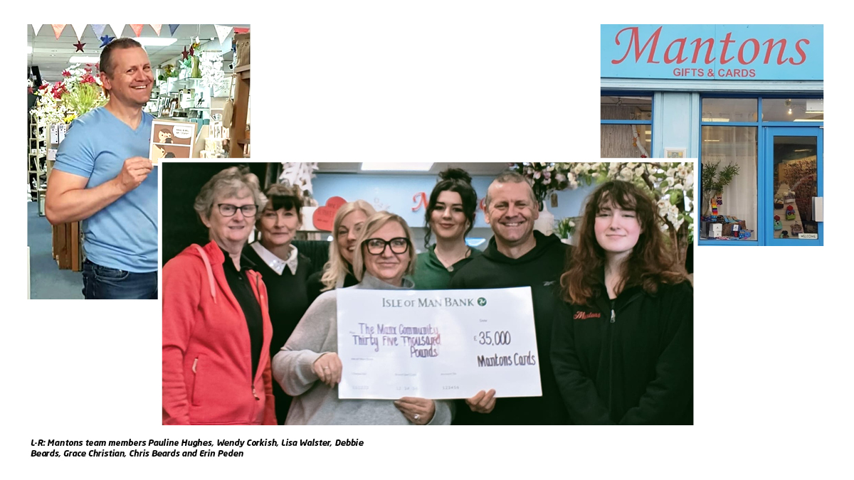 Mantons Gifts & Cards in the Isle of Man village of Port Erin has now raised a total of £35,000 for charities and local organisations. The money has been raised by a combination of running events, donations of stock, and sales of greeting cards.