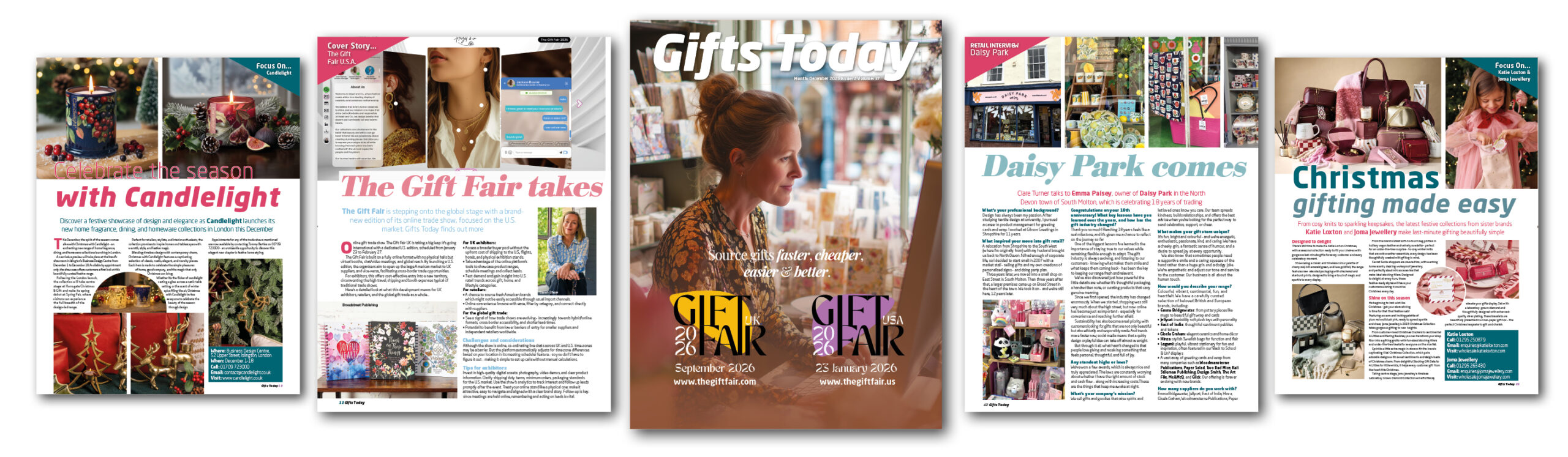 IN OUR FAIR FOCUS SECTION: we preview The Gift Fair U.S.A., Harrogate Christmas & Gift, Scotland’s Trade Fair Spring, Toy Fair, Spring Fair, and Ambiente, alongside a comprehensive listing of key 2026 trade shows, at home and overseas.