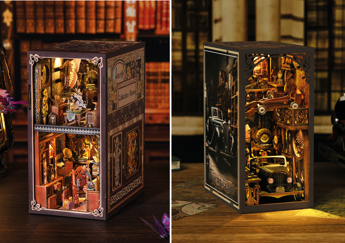 Each intricately detailed Book Nook features a touch-sensor light and can be displayed standalone or nestled within a bookshelf, creating a unique decorative statement.